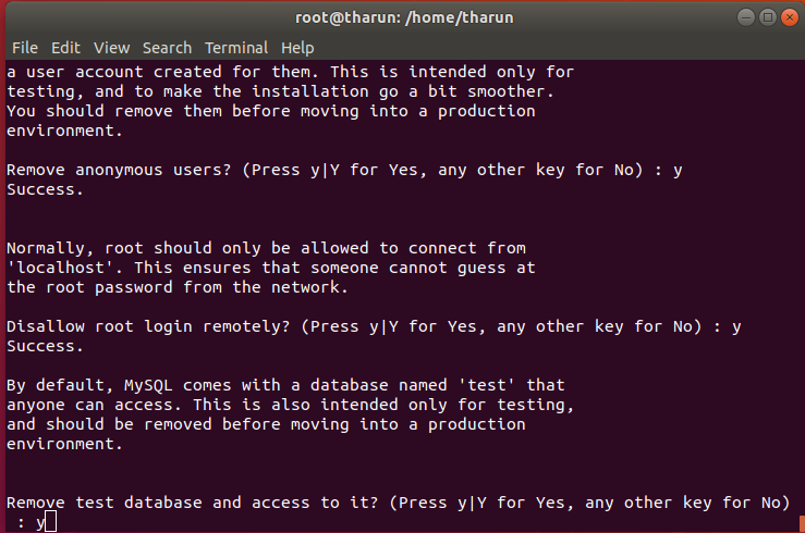 2. Remove anonymous users? (Press Y for Yes, any other key for No): Y