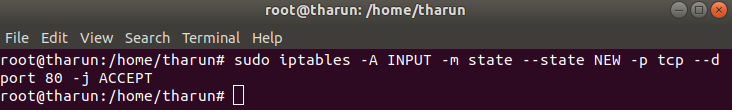 sudo iptables -A INPUT -m state --state NEW -p tcp --dport 80 -j ACCEPT