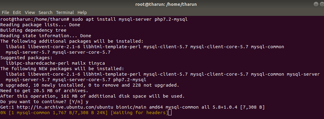 sudo apt install mysql-server php7.2-mysql