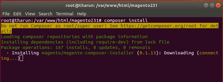 sudo apt-get install composer cd /var/www/html/magento231 composer install