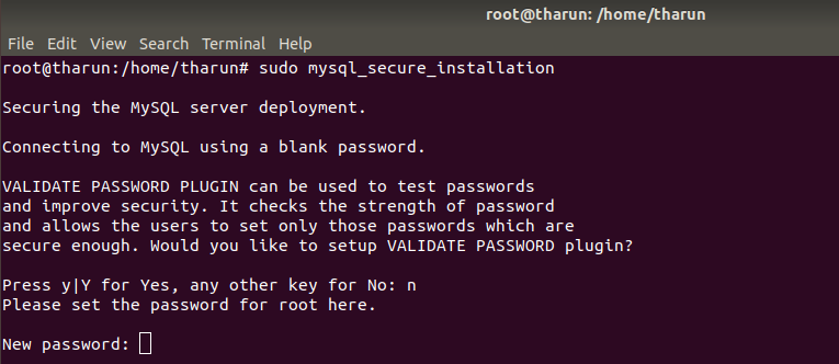 After this command the installer will prompt for the root password, This password will work for your MySQL root user. After installing MySQL by above command now execute the following command for initial settings of MySQL server.